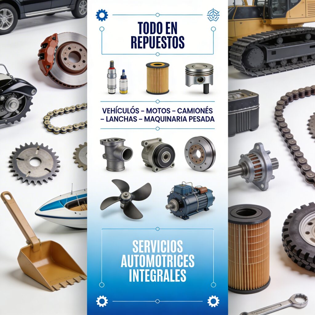 AQUI ENCONTRARAS LAS MEJORES VENTAS DE REPUESTOS PARA TU VEHICULO, MOTOS, CAMIONES, LANCHAS, MAQUINARIA PESADA Y SERVICIO AUTOMOTRIZ, SOMOS EL ENLACE ENTRE UD Y SU CASA DE REPUESTOS